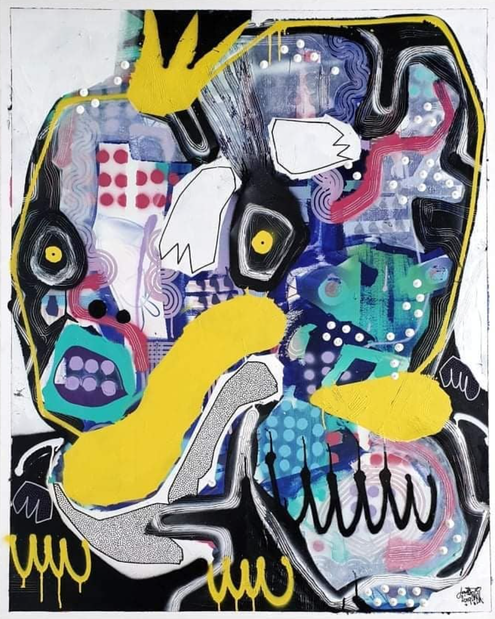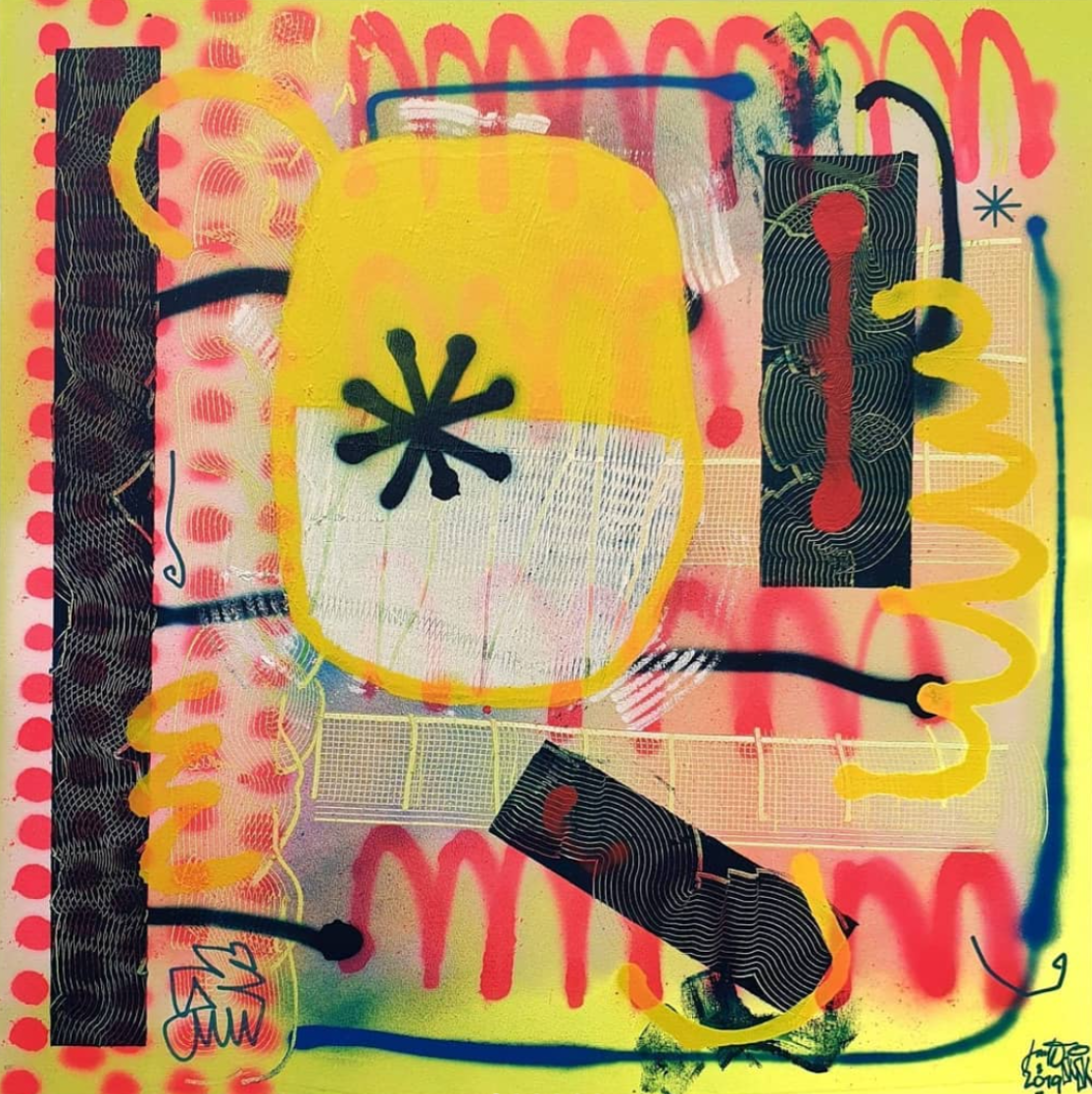 Collaboration work painted between Jacqueline Östlind and Thomas Gunnarsson, painted on the same canvas, at the same time. A very playful, experimental journey between two artists having to share the same space. Thomas and Jacqueline where during this period very generous with he paint, letting it dry in big chunks, giving the paintings a lot of texture. During their exhibition in 2019 many visitors expressed the urge to touch - or even taste them.