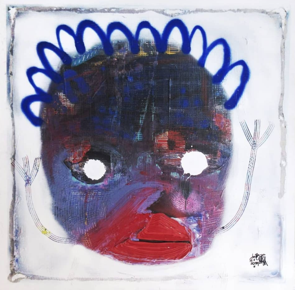 This playful piece was part of the exhibition "Målar du något fult så målar jag över" (If you paint something ugly, I'll paint over it" where Thomas and Jacqueline would share a canvas and paint over any parts they didn't like by one another.